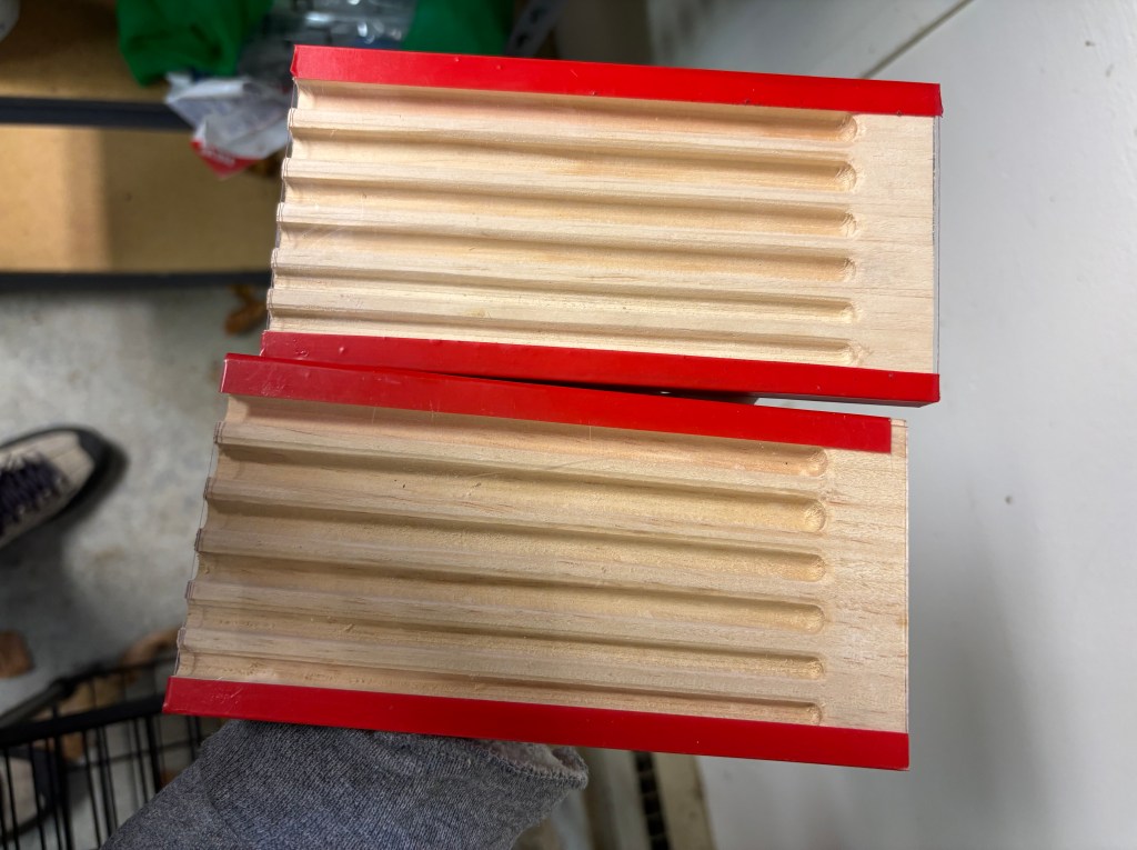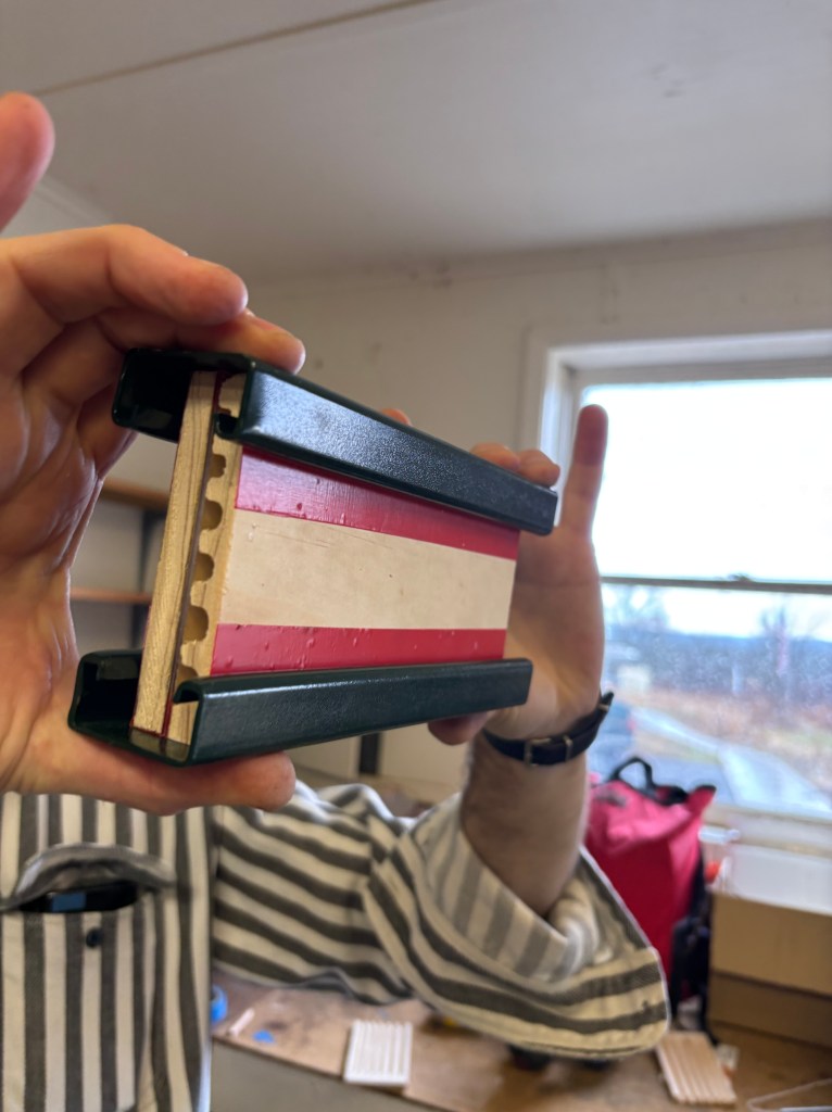Mi enfoque conceptual para estos nidos consistía en que las unidades de baldosas se deslizaran dentro de algún tipo de marco o canal estándar, de modo que un investigador pudiera extraer fácilmente una baldosa para observar a las abejas, las avispas o cualquier otro organismo que pudiera estar anidando o almacenando provisiones en su interior. Desarrollé varias opciones de complejidad variable utilizando diferentes perfiles metálicos extruidos y soportes disponibles en McMaster; posteriormente, presupuesté las mejores alternativas, pero todas resultaron ser excesivamente costosas. Esto dio lugar a un riguroso proceso de ingeniería de valor que culminó en una solución sumamente sencilla, la cual sometimos a prototipado, ajustamos ligeramente y, finalmente, llevamos a producción.