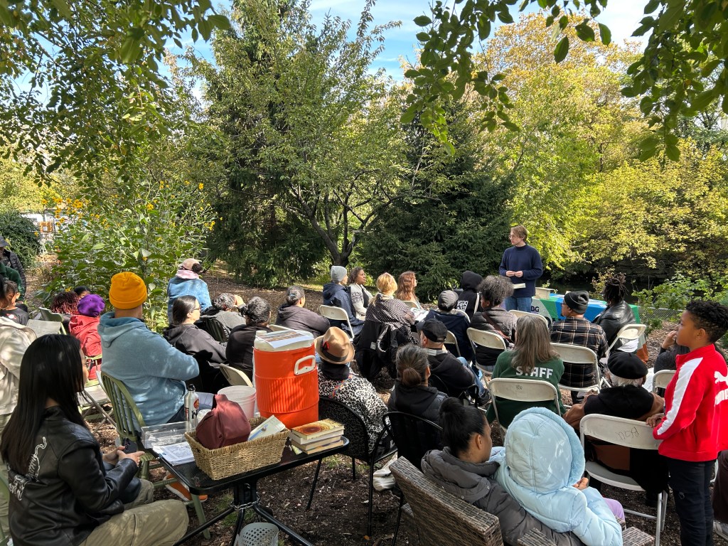 – Thanks to Drew Gardens for hosting us!! The amazing Drew Gardens on the Bronx River in NYC hosted the lab to talk about wild pollinators in cities and how to support them in our green spaces. Great crowd and a lovely way to wrap up the 2025 field season.