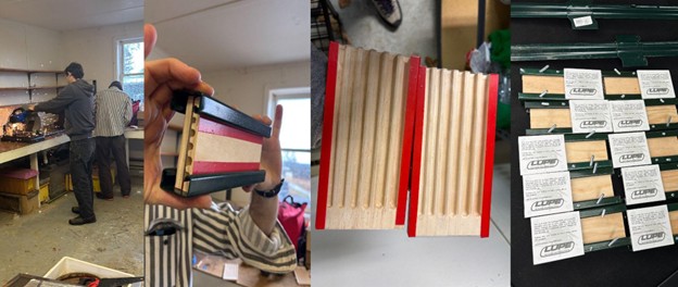 We had about three weeks from initially talking about this to installing the first unit- so it was a really fast process. The hardest part (besides lack of time) has been getting the wood milled. Without a full shop with a planer and router table, it is time consuming to thickness and groove every pine tile. We can cut them using a handheld router, but in the interest of time, we employed some friends to plane and route the slots for us. In the future when we have more lead-time, we will probably create a jig so that we can do this part using a handheld router. Other than that, it was key to have competent helping hands and a space to work even if not a fully tooled-up fab shop.